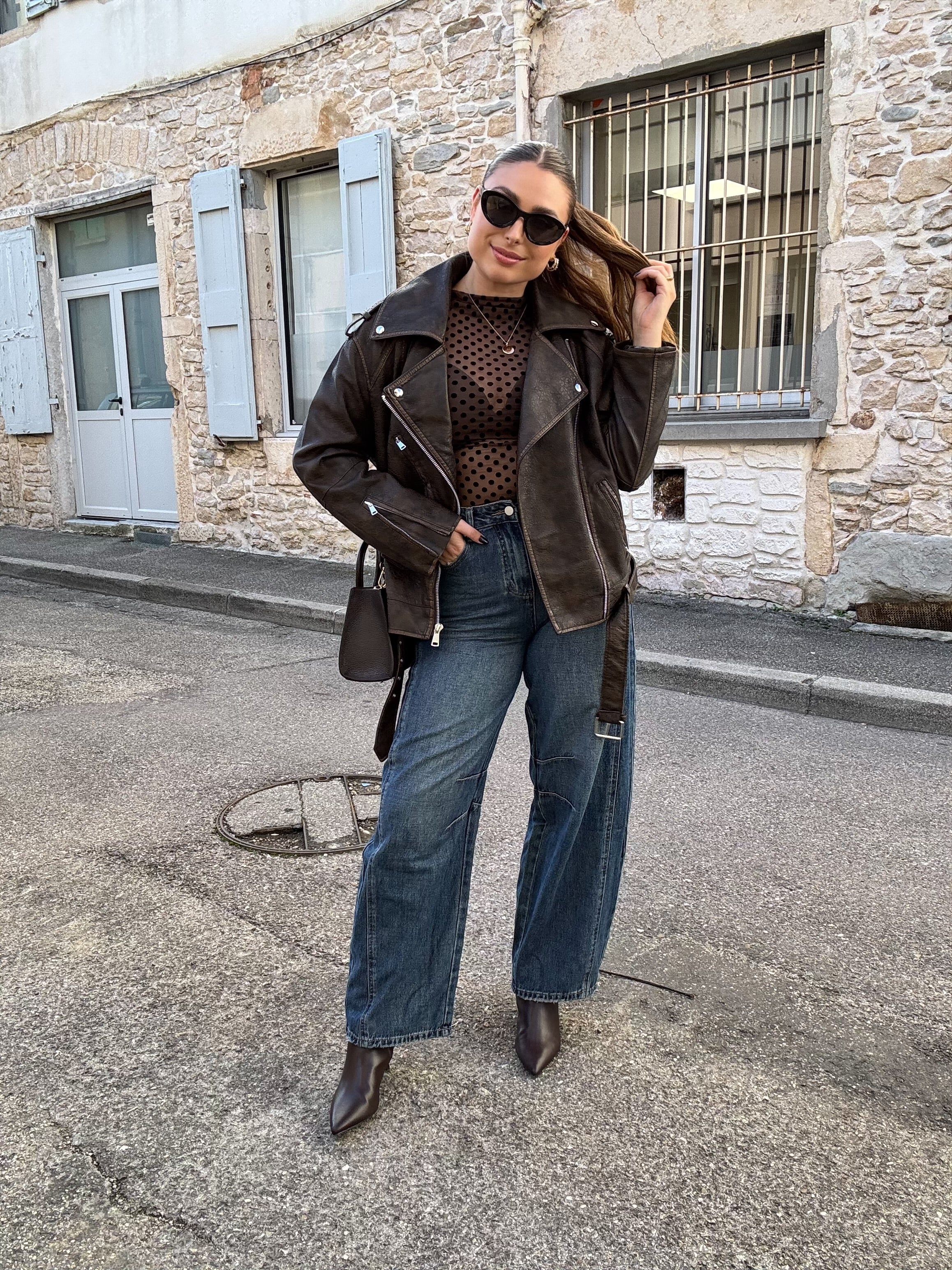 Coupe resserrée en bas de jambe , pince au niveau du genou