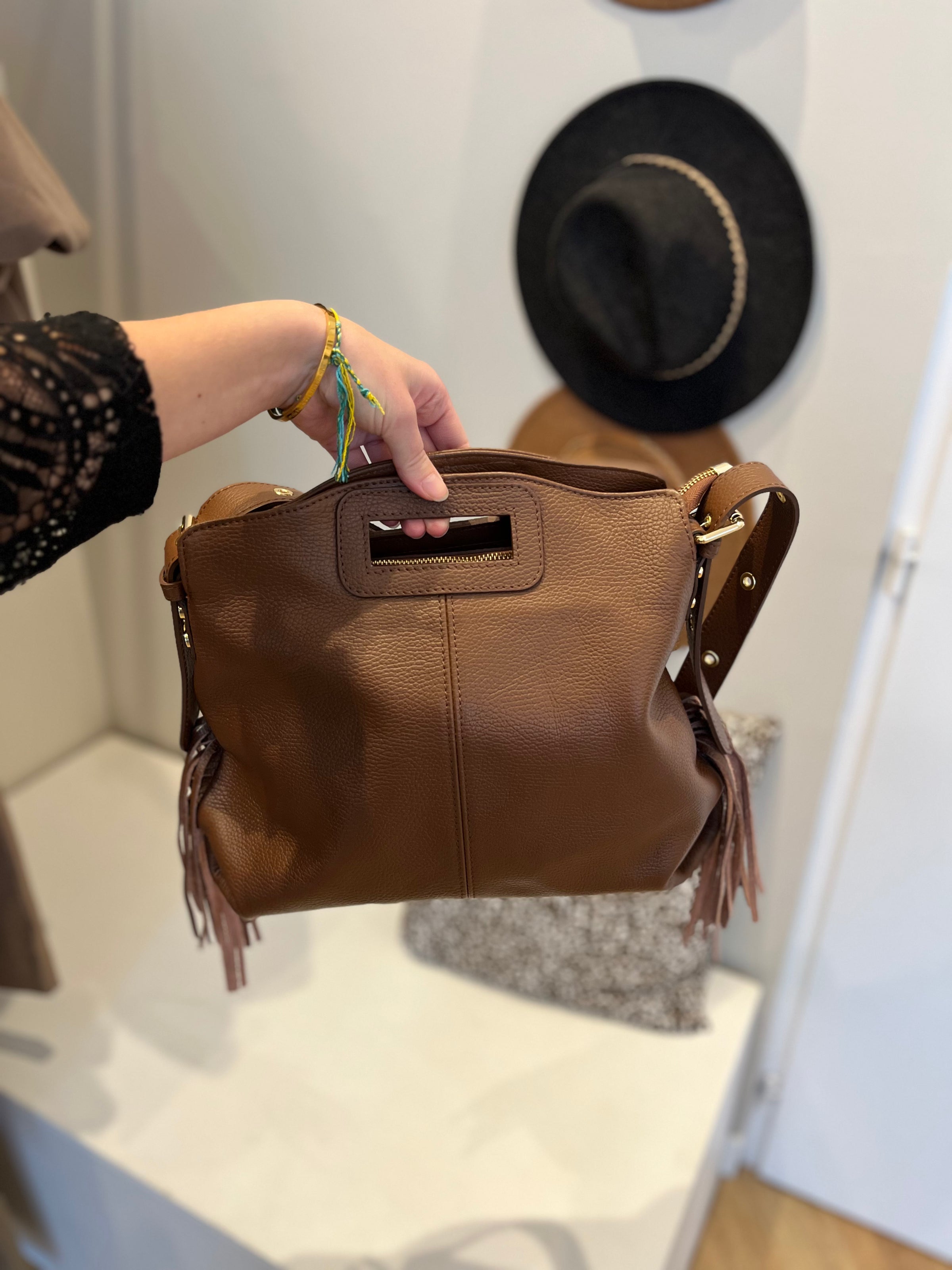 - Sac en cuir grainé camel